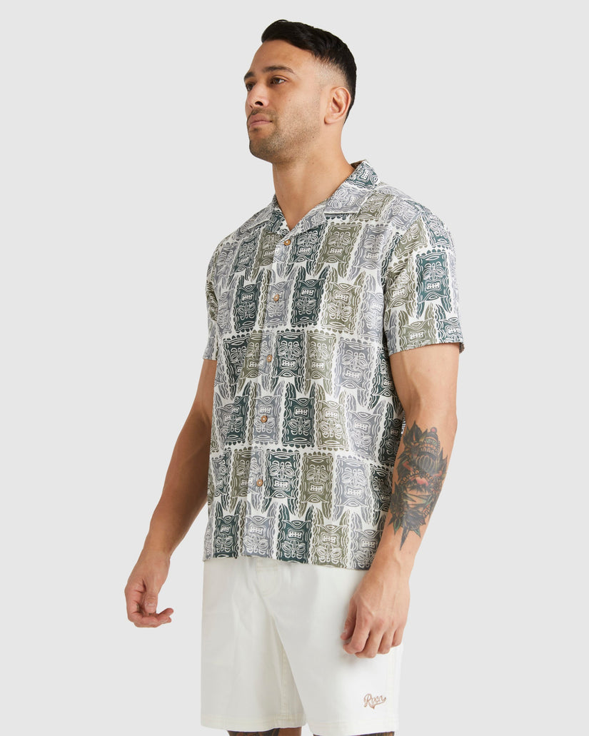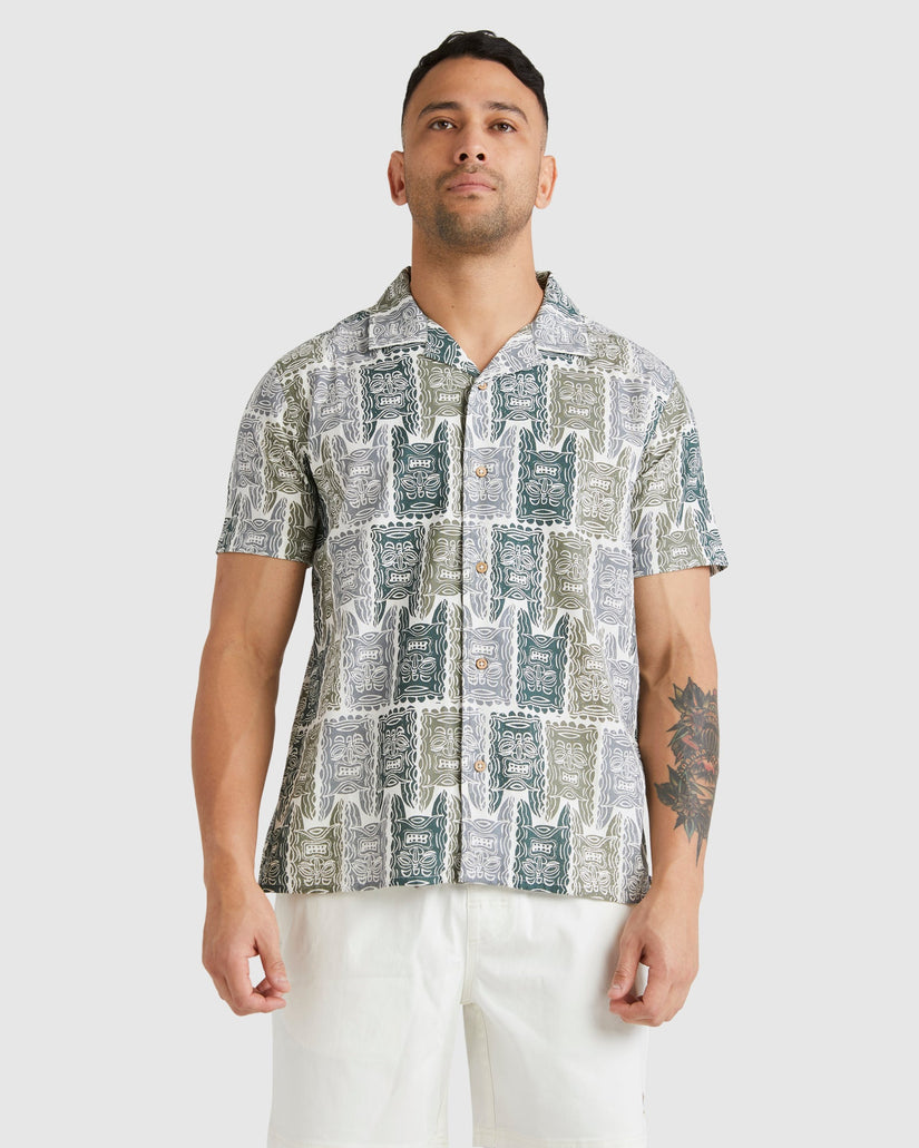 The Hawaii x mark oblow tapa short-sleeve woven shirt is an easy summer staple with its lightweight cotton fabric, artist print, and button-up closure you can rock on its own or layered over your favorite tee. Featured here in the antique white colorway.