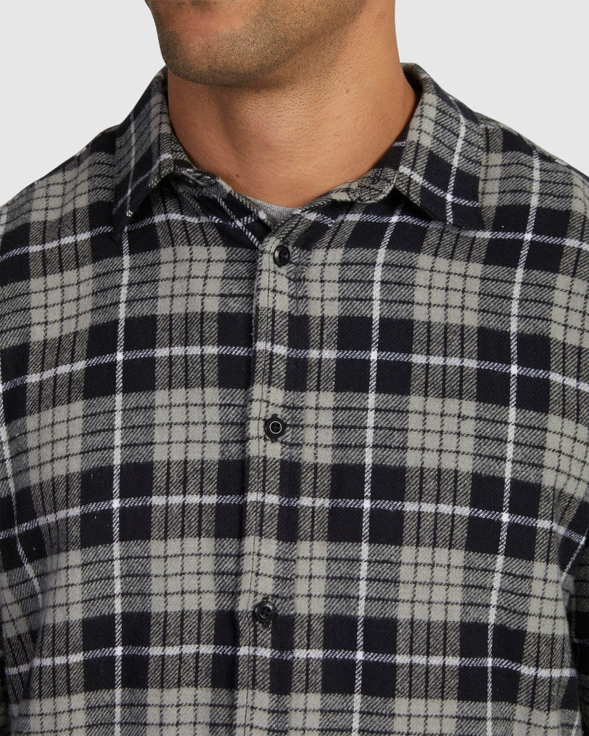 With one classic flannel and two chest pockets, the RVCA treets long sleeve shirt delivers endless versatility. A core men's plaid shirt, the button up is made from 100% cotton flannel, finished with buttoned chest pockets and a RVCA woven label at the left pocket.