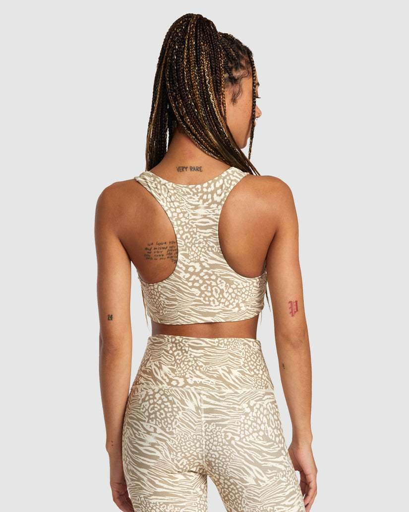 Ideal for medium-impact training, the VA sport essential mid support sports bra is built from recycled technical fabric, adding moisture-wicking and anti-microbial properties to keep you dry and odor-free. This women's workout bra is styled with a racerback and scoop neck, plus a choice of fresh prints and colorways.