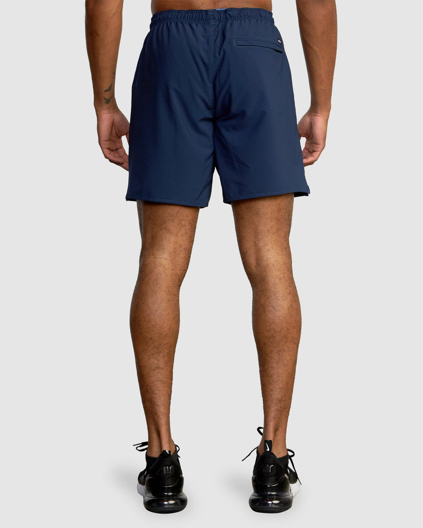 Combining heritage design and performance-enhancing comfort, the RVCA yogger stretch elastic waist athletic shorts 17" have you covered. These men's athletic shorts are made from stretch polyester and feature an elastic waist drawcord waist, slightly scalloped hem with split side vent and pockets throughout. Topped with RVCA VA branding.