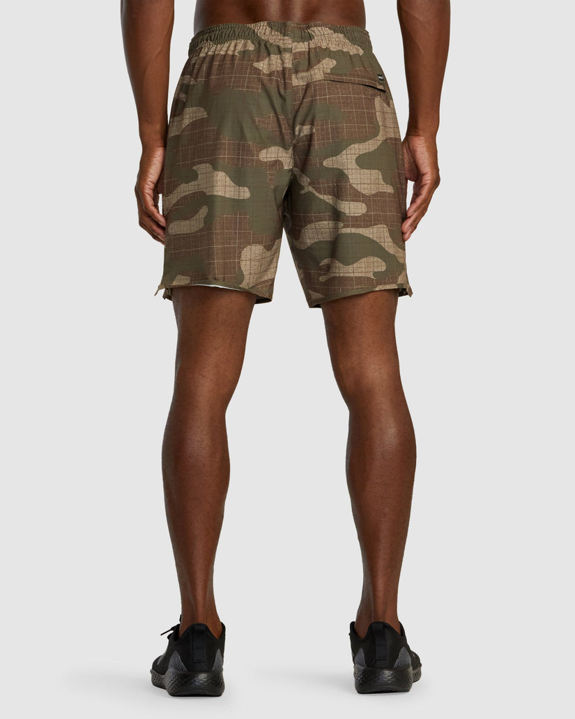 Combining heritage design and performance-enhancing comfort, the RVCA yogger stretch elastic waist athletic shorts 17" have you covered. These men's athletic shorts are made from stretch polyester and feature an elastic waist drawcord waist, slightly scalloped hem with split side vent and pockets throughout. Topped with RVCA VA branding.